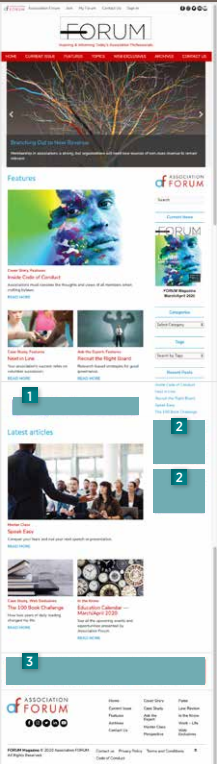 With articles published online weekly, FORUMmagazine.org addresses industry topics such as leadership, technology, member engagement, meetings & events, industry news, culture, and more. The Forum Magazine Online websitemeets members where they are and serves timely and relevant content continuously.