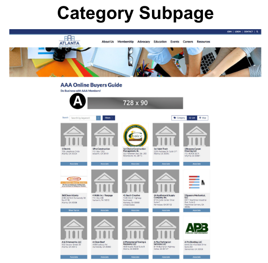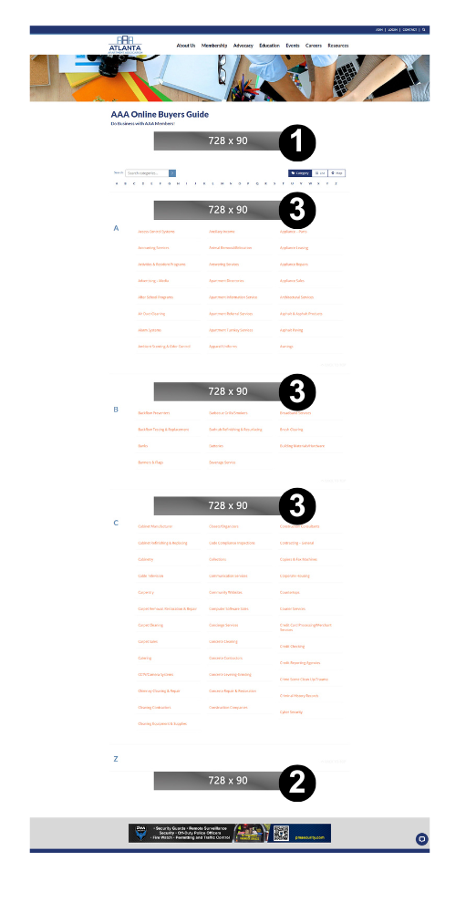 728 x 90 pixels & 320 x 50 (mobile size) pixels – 26 options are available for the alpha leaderboard since it’s placed above each alpha letter A-Z.