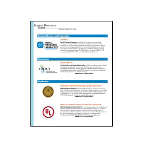 This special advertising section, featured in each print issue of Journal AWWA, is a leading reference guide across the water and wastewater sectors. Buyers’ Resource Guide ads are also online each month. Includes up to 120-word description and company logo.