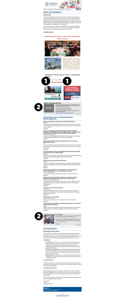 Disclaimer: Please note that the mockup shows overall newsletter layout, but exact ad location on the newsletter will vary based on the amount of editorial content supplied each issue.