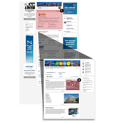 • Multiple advertising options including enhanced listings with added features, run of site display advertising, and sponsored content marketing opportunities.