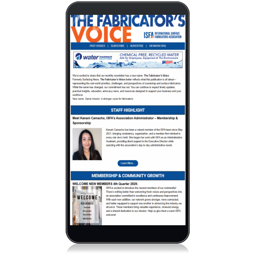 ISFA’s monthly eNewsletter, The Fabricator’s Voice, is sent to approximately 8,500+ contacts. It’s a great way to stay in front of our audience in between magazines with timely updates and promotional opportunities.