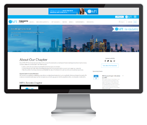 Advertising on the MPI Toronto Chapter website is a great way to reach member and non-member visitors and reinforce your marketing message. Visitors log on to learn about upcoming association events and discover ways to maximize their membership. Advertising on www.mpiweb.org/chapters/toronto offers several cost-effective opportunities to position your company as a leader in front of an influential group of industry professionals.