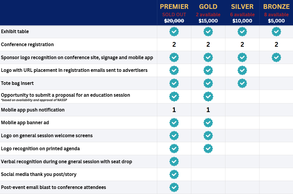 Slide inclusion and mention at the beginning of the session by presenter. Sponsor may choose the session based on availability and NASSP approval.
