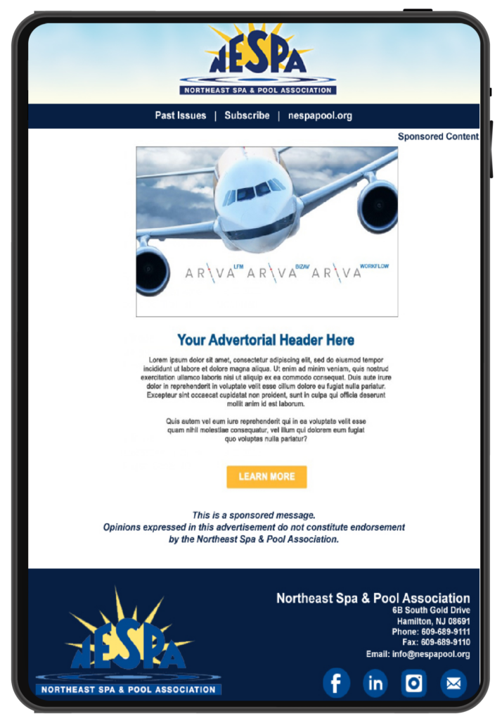Position your company as a thought leader and solution provider in the pool and spa industry! Our sponsored content eBlast opportunity allows you to reach key decision-makers at their workplace or on the go, educate our members regarding the benefits of using your product or service, and improve the credibility of your company.