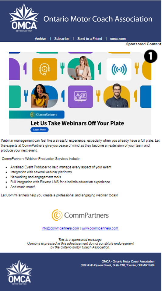 Content should include practical, useful information in which the member would find value, which should be independent of the particular advertiser. The overall message and tone should not be promotional in nature