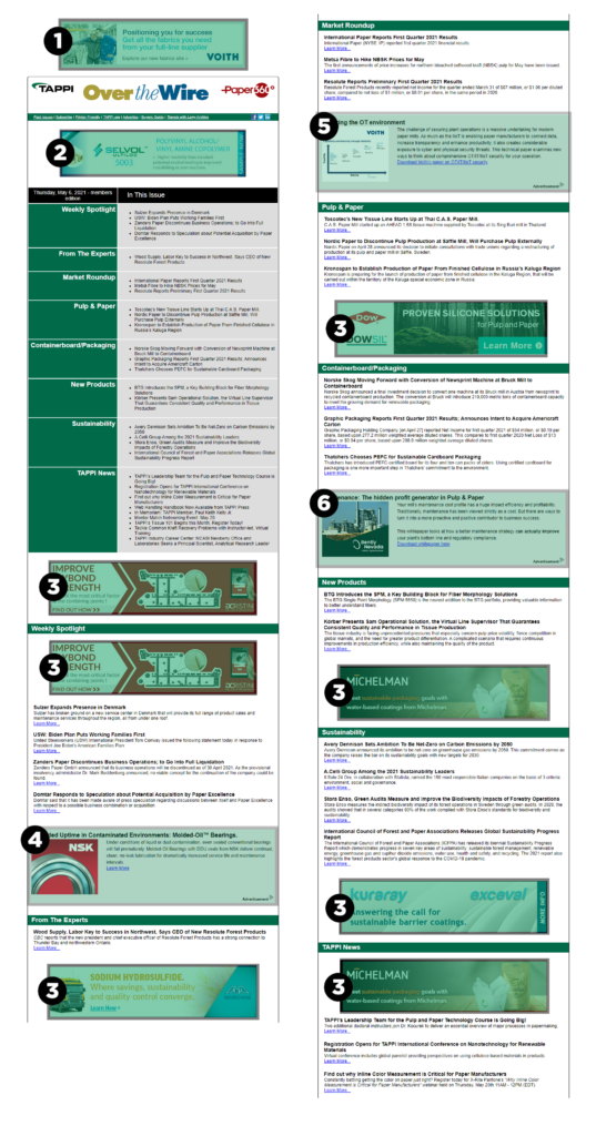 Over the Wire is a weekly eNewsletter that reaches TAPPI members worldwide. The newsletter, distributed every Thursday, provides instant access to industry news and information.
