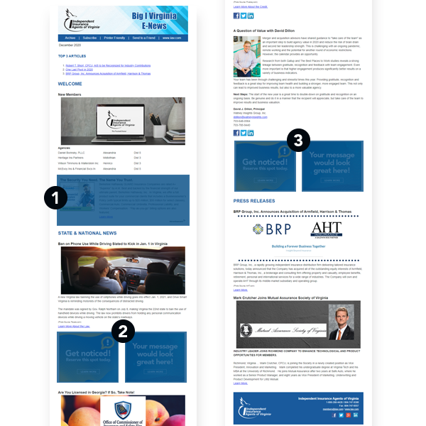 Disclaimer: Please note that the mockup shows overall newsletter layout, but exact ad location on the newsletter will vary based on the amount of editorial content supplied each issue.