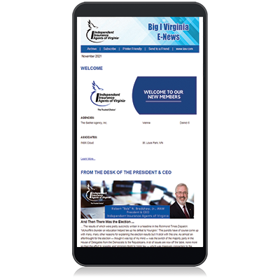 Now more than ever, professionals consume information on the go. IIAV Big I Virginia E-News allows members to stay informed about timely industry topics and association news whether in the office or on the road.